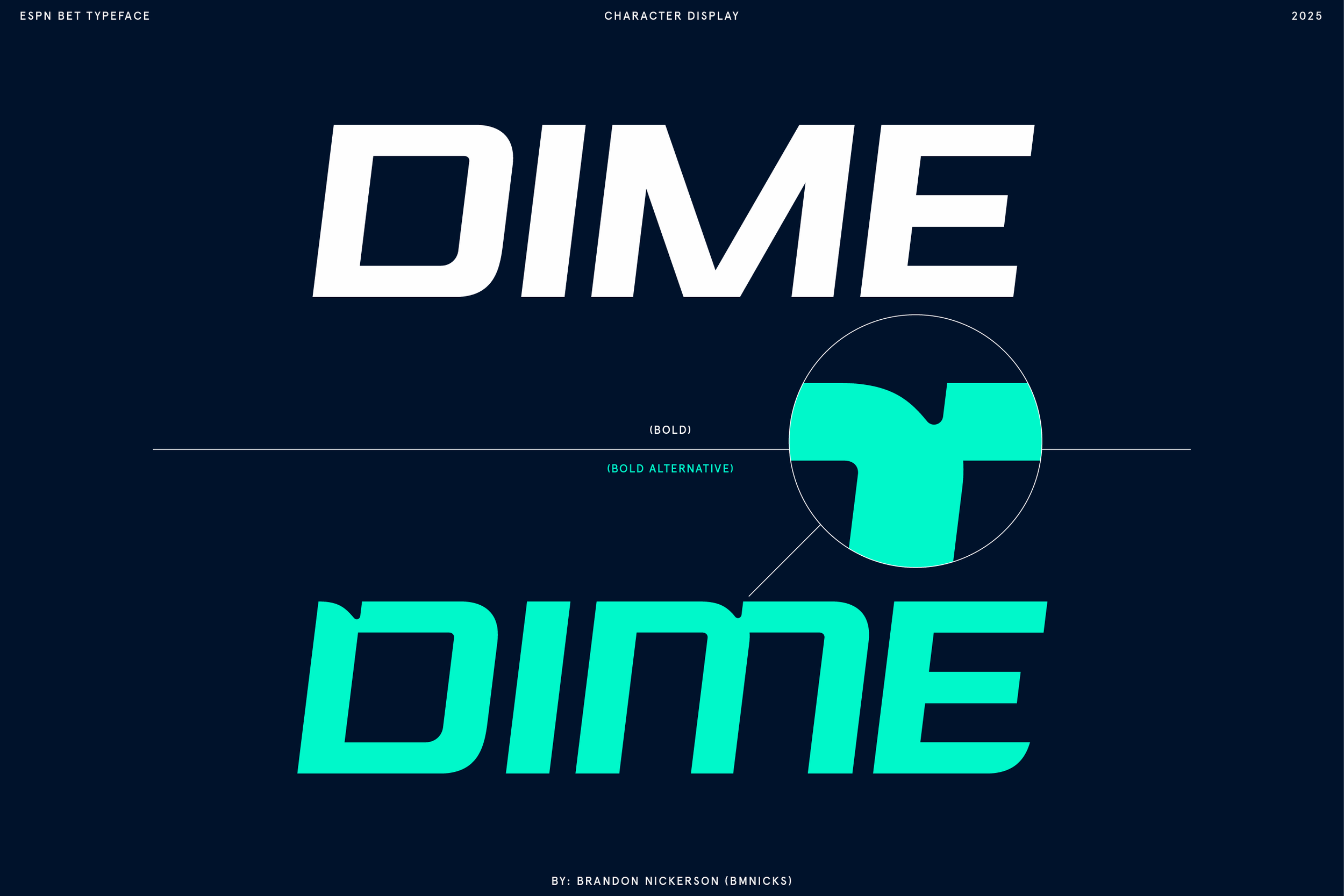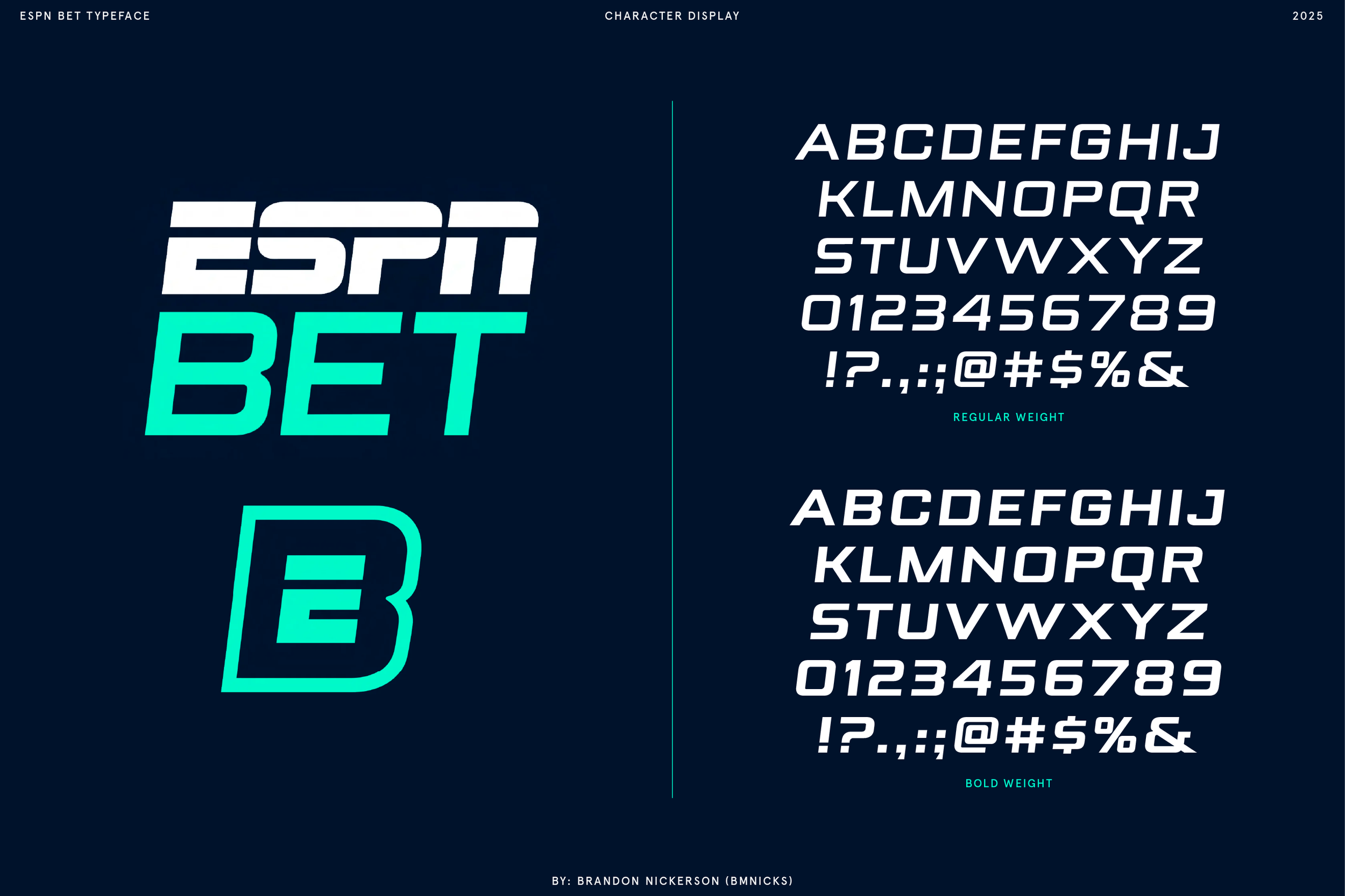 The final result is a brand-aligned typeface with two weights and a range of alternate letterforms, built for flexibility while maintaining consistency with the ESPN BET identity.