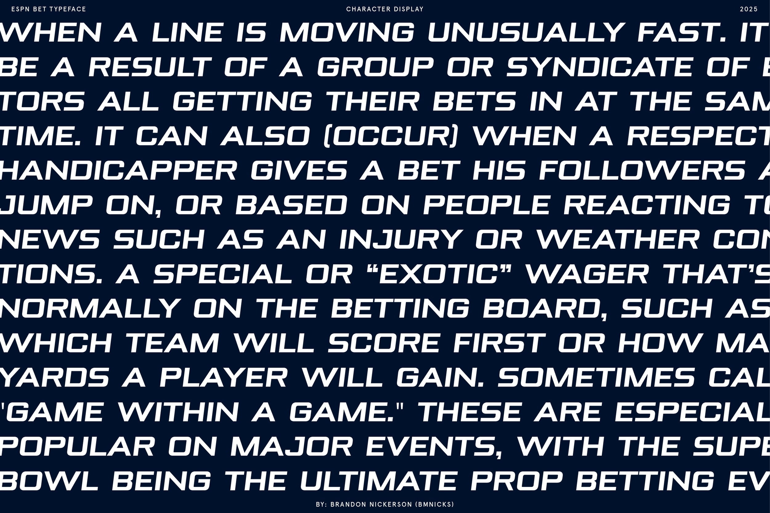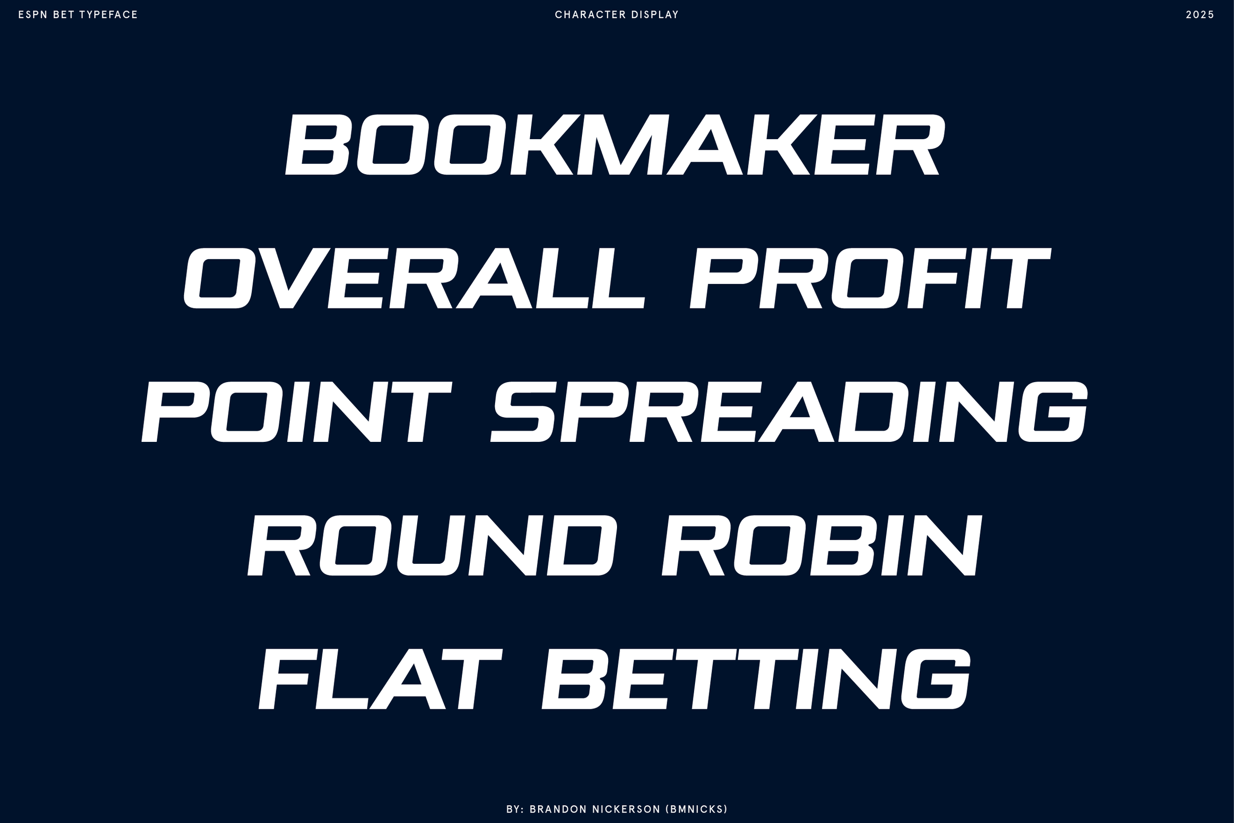 During the launch of ESPN BET, ESPN commissioned a custom typeface designed to extend their existing logotype into a complete system.